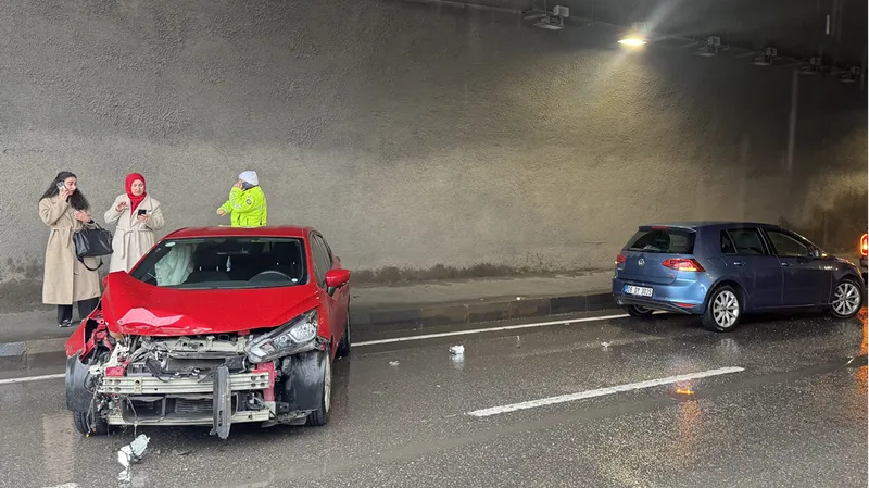 Karadeniz Sahil Yolu Çömlekçi Tüneli'nde, sürücülerinin ismi öğrenilemeyen 34 GOA 248 ile 43 AHL 868 plakalı otomobiller çarpıştı. Araçlardan 43 AHL 868 plakalı otomobil devrildi.