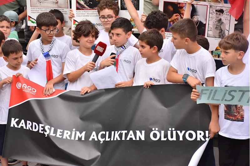 TRABZON (AA) - Trabzon'da, Anadolu Gençlik Derneği (AGD) ve çeşitli sivil toplum kuruluşlarının yanı sıra çocukların katılımıyla İsrail'in Gazze'ye yönelik saldırıları protesto edildi.
