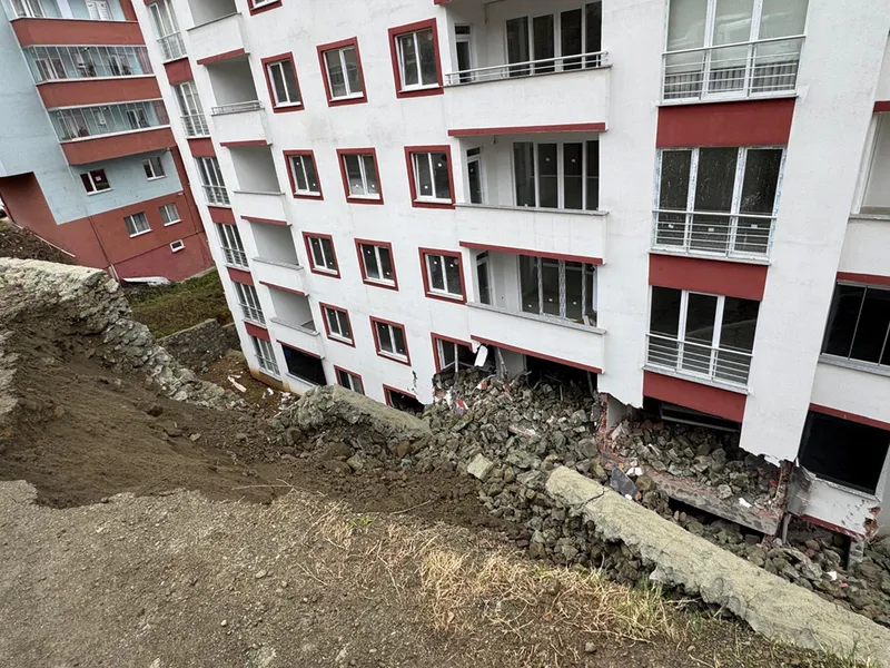 TRABZON (AA) - Trabzon'un Yomra ilçesinde istinat duvarının çökmesi sonucu bir bina zarar gördü.