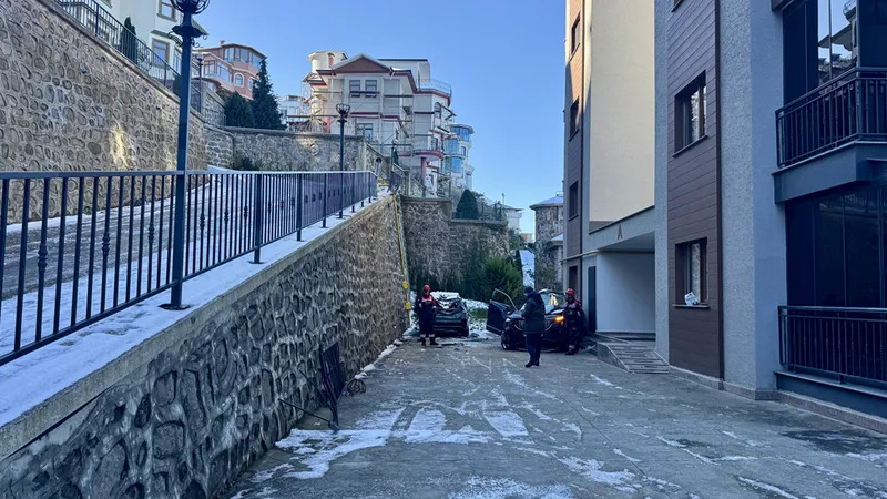 Boztepe Mahallesi'nde F.H'nin (51) kullandığı 61 FH 822 plakalı SUV tipi araç, buzlanma nedeniyle sürücüsünün direksiyon hakimiyetini kaybetmesi sonucu sitenin bahçesine devrildi.