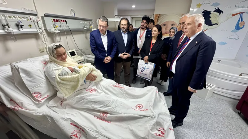 Aileleri hastanede ziyaret eden Trabzon Valisi Aziz Yıldırım bebeklere çeşitli hediyeler ve Trabzonspor forması hediye etti.