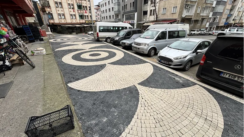 Kent merkezi ve ilçelerinde eş zamanlı yürütülen çalışmalar kapsamında, bazı alanlarda da Trabzonspor temalı desenler ve tarihi motifler kaldırımlara işleniyor.