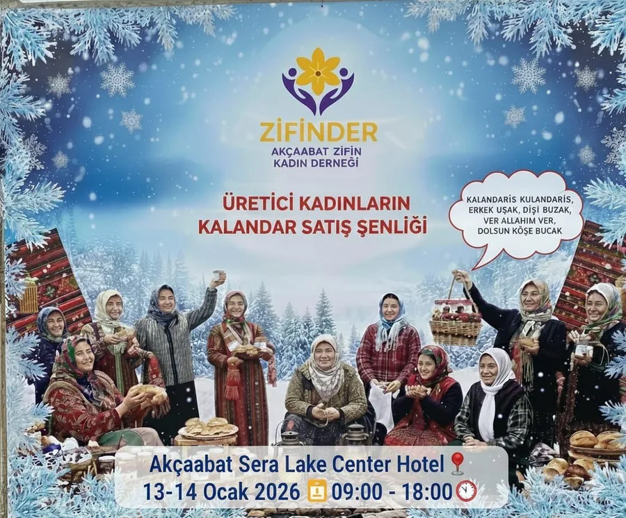Akçaabat’ın ilk kadın derneği olma özelliğini taşıyan Zifin Kadın Derneği (ZİFİN-DER), ilk etkinliğini düzenlemeye hazırlanıyor. “Üretici Kadınların Kalandar Satış Etkinliği” adıyla gerçekleştirilecek etkinlik, 13-14 Ocak tarihlerinde Akçaabat Sera Lake Center Hotel’de yapılacak. Etkinlik, her iki gün boyunca 09.00 ile 18.00 saatleri arasında ziyaretçilere açık olacak.
