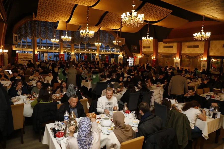 Ezanın okunmasıyla birlikte oruçların açıldığı programda, Ramazan ayının bereketi ve paylaşma kültürü aynı sofrada bir araya gelen davetlilerle birlikte yaşandı.