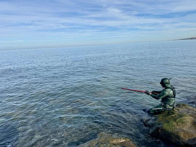 TRABZON (AA) - ENES SANSAR - Trabzon'un Ortahisar ilçesindeki 2 Nolu 112 Acil Sağlık Hizmetleri İstasyonu'nda görevli acil tıp teknisyeni Recep Hafızoğlu, Karadeniz'de zıpkınla balık avlayarak iş hayatının stresinden uzaklaşıyor.