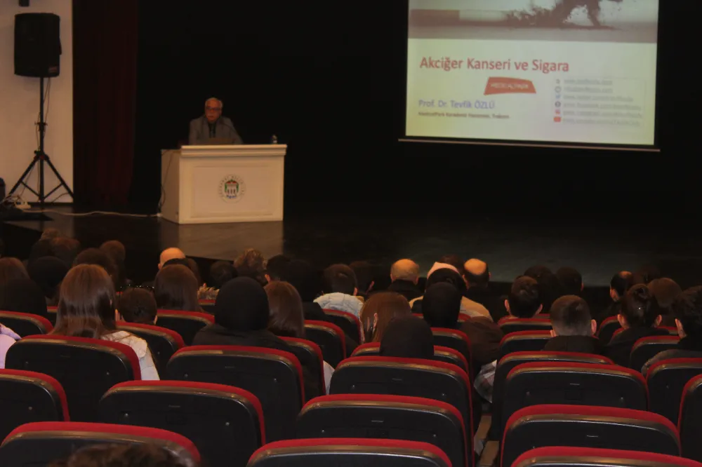 Akçaabat Kaymakamlığı ve Akçaabat Belediyesi iş birliğiyle, “Akciğer Kanseri ve Tütün Bağımlılığı” konulu bilgilendirici bir konferans düzenlendi. Erol Günaydın Sanat Merkezi’nde gerçekleştirilen etkinlikte, Prof. Dr. Tevfik Özlü konuşmacı olarak yer aldı.