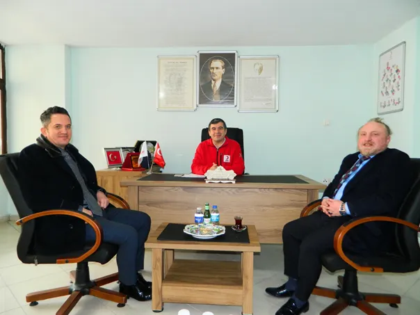 Okul Müdürü Ercan Durak ve Rehber Öğretmeni Ali Osman Şaş, Türk Kızılay Akçaabat Şube Başkanı Saadettin Balcı ile bir araya geldi.