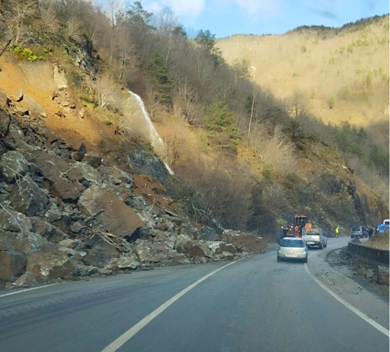 Heyelan nedeniyle bir süre kapanan yol, Karayolları ekiplerinin iş makineleriyle yaptığı çalışmanın ardından ulaşıma açıldı.