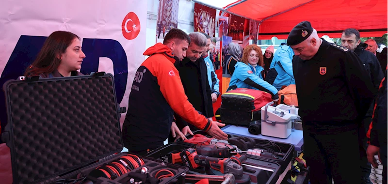 Kitapçık ve broşür dağıtımının yapıldığı etkinlikte, arama kurtarma faaliyetlerinde kullanılan ekipmanlar sergilendi.