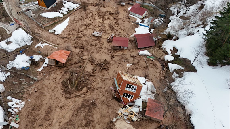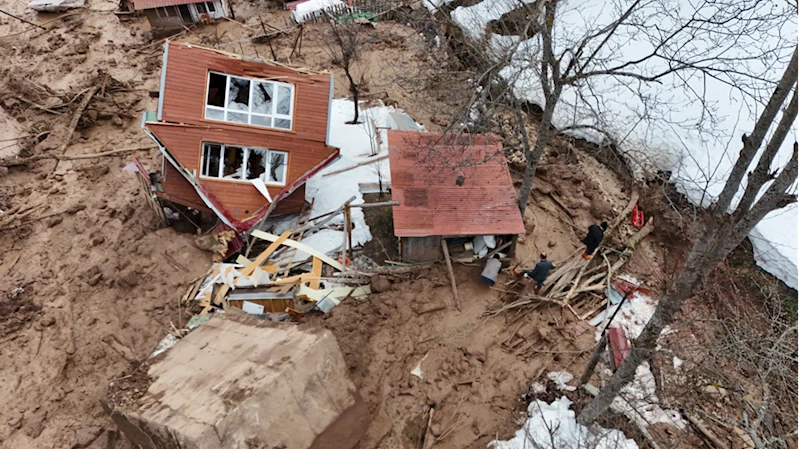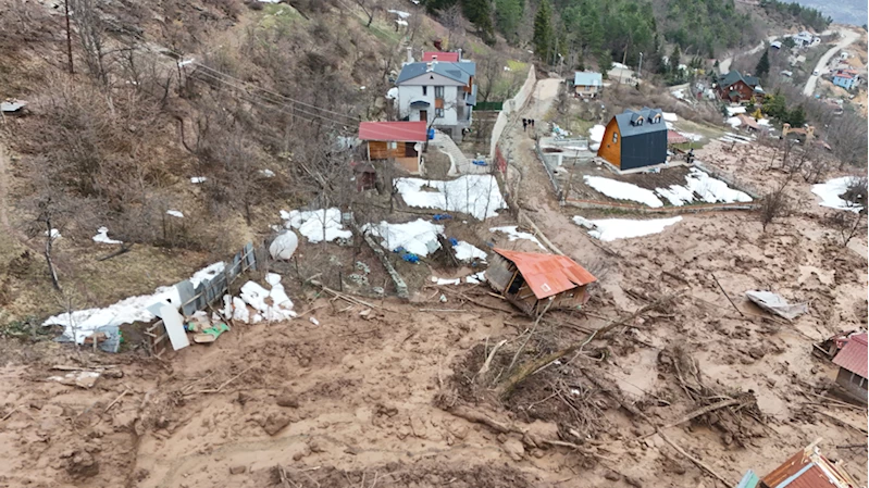 Yavuz Özdermir'e ait ev ve müştemilatının yıkıldığını bildiren Durmuş, "600 metrelik alana 1 metre kalınlığında balçık yığıldı. 2 ev ağır zarar gördü, ağaçlar yıkıldı. Belediye başkanımızla birlikte buradaydık. Şimdilik tehlike geçmiş görünüyor, tedbir için iş makinesi bekletiyoruz." dedi.
