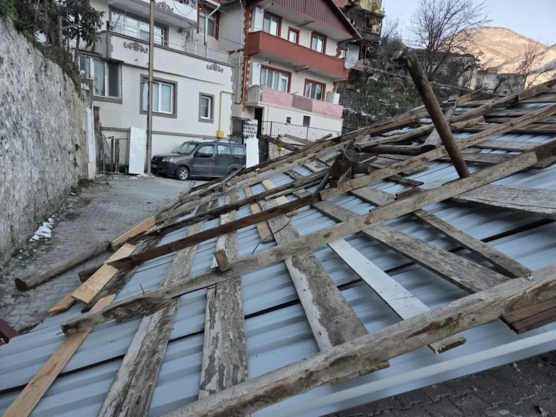 ARTVİN (AA) - Artvin'de şiddetli rüzgar nedeniyle bir evin uçan çatısı otomobilde hasara neden oldu.