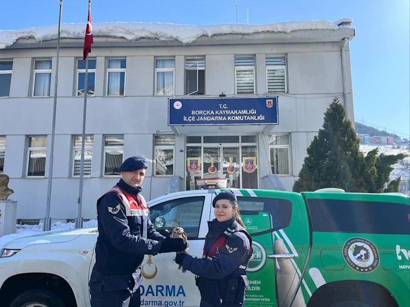 Borçka-Muratlı karayolu üzerinde devriye yapan jandarma ekipleri tarafından yaralı vaziyette bulunan boynuzlu baykuş, Doğa Koruma ve Milli Parklar Şube Müdürlüğü ekiplerine teslim edildi.