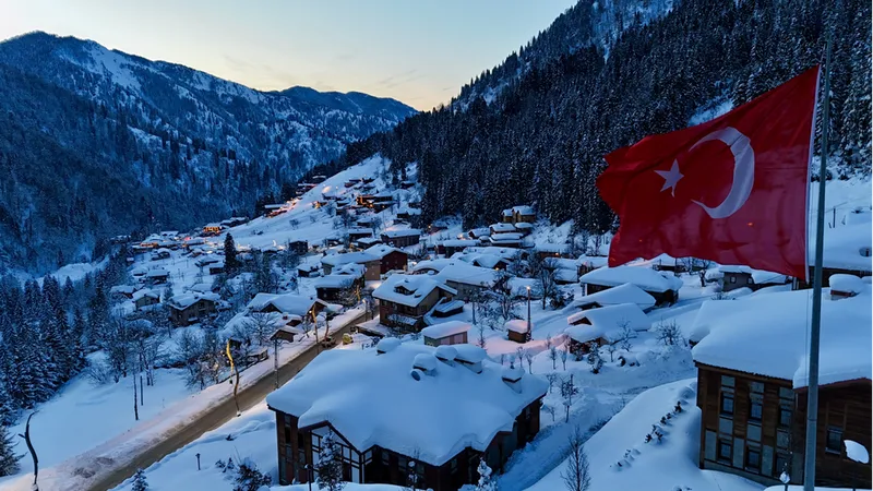 Çamlıhemşin ilçesindeki önemli turizm merkezlerinden Ayder Yaylası, kar yağışının ardından beyaz örtüyle kaplandı.
