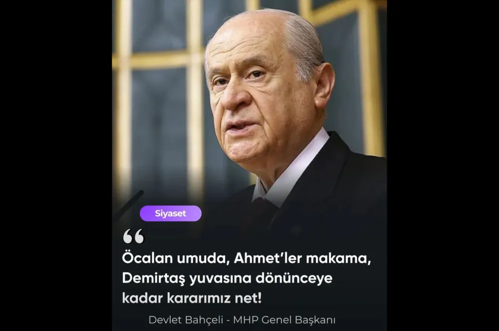 Bahçeli, grup toplantısını ise dikkat çeken sözlerle tamamladı. MHP lideri, “Anadolu huzura, Öcalan umuda, Ahmetler makama ve Demirtaş yuvasına dönünceye kadar kararımız nettir!” dedi.