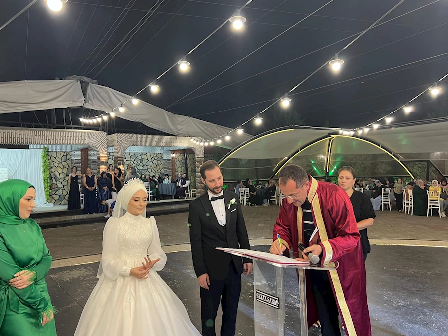 Birlikte yaşama ilk adımlarını atan Buse-Serkan Dertli çiftinin nikâhlarını kıyan Başkan Ekim, kendilerine bir ömür boyu mutluluk diledi.