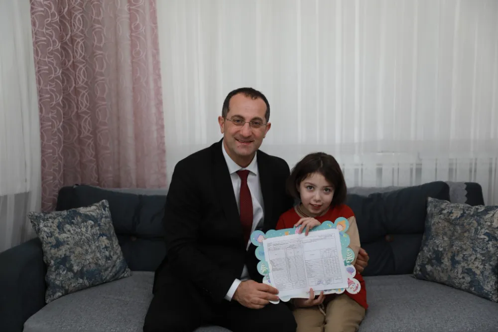 Akçaabat Belediye Başkanı Osman Nuri Ekim, evde eğitim gören Vakıfbank Merkez İlkokulu 4. sınıf öğrencisi Kübra Nur Yılmaz’ı evinde ziyaret ederek karnesini teslim etti.