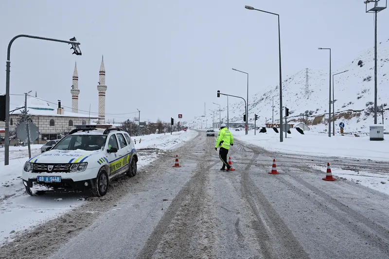 Bayburt Emniyet Müdürlüğü bölge trafik ekipleri, güzergahtaki 21 Şubat Küçük Sanayi Sitesi ile Aşağı Kop köyü mevkisinde araçların geçişine izin vermiyor.