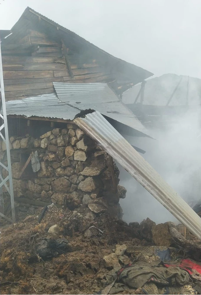 Merkeze bağlı Alapelit köyünde gece saatlerinde, Selmani ve Emine Akkuş çiftinin yaşadığı 2 katlı evde henüz belirlenemeyen nedenle yangın çıktı.