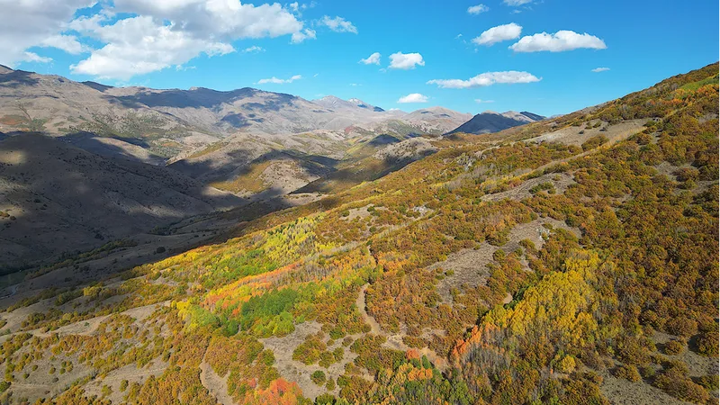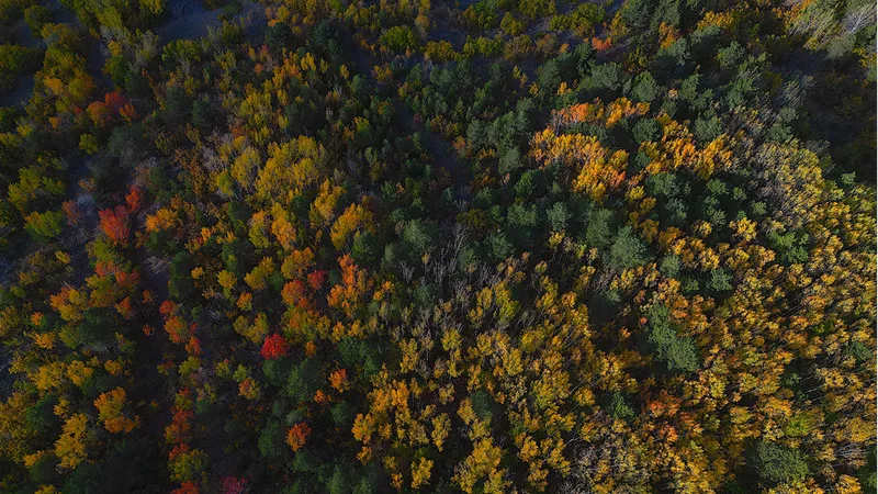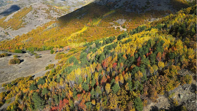 Bölgede oluşan sonbahar renkleri dronla görüntülendi.