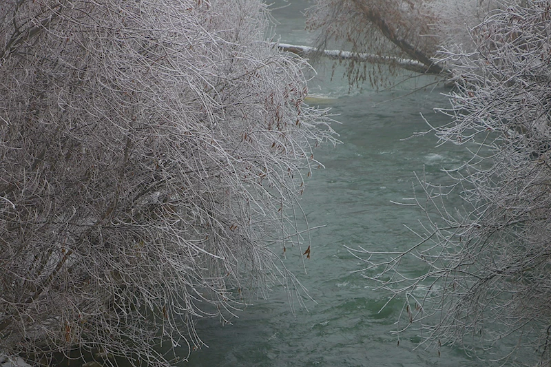 Hava sıcaklığının gece sıfırın altında 8 derece ölçüldüğü Bayburt'ta araçların camları buz tuttu, ağaç ve bitkilerde kırağı oluştu.