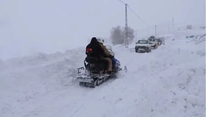 Jandarma ekipleri, yolu kapalı olan köydeki hastaya kar motoru ile ulaşarak ambulansa getirilmesini sağladı.