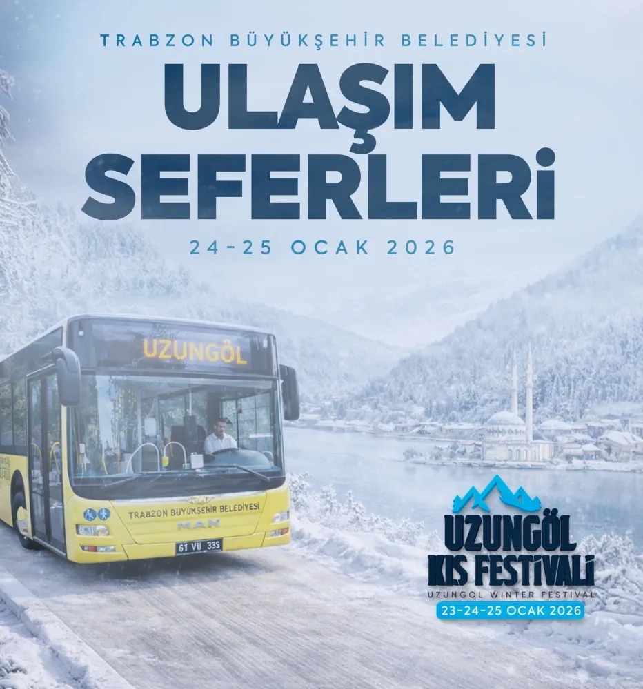Trabzon Büyükşehir Belediyesi iş birliğinde, bu yıl ilki düzenlenecek "Uzungöl Kış Festivali" 23-25 Ocak tarihleri arasında gerçekleştirilecek. Büyükşehir Belediyesi, festivale katılmak isteyen vatandaşların ulaşımını kolaylaştırmak amacıyla 24 ve 25 Ocak günlerinde ücretsiz otobüs seferleri düzenleyecek.