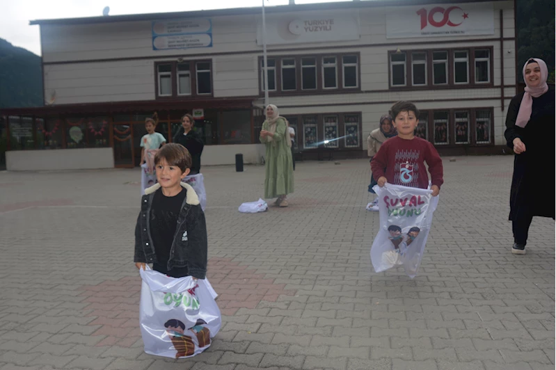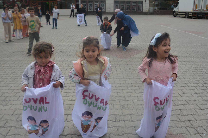 Çocuklar, kursun tamamlanması dolayısıyla düzenlenen şenlikte oyunlar oynayarak ve çeşitli yarışmalarda mücadele ederek gönüllerince eğlendi.
