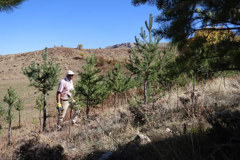 BAYBURT (AA) - BEŞİR KELLECİ - Bayburt’ta yaşayan Fransızca öğretmeni Hasan Kaymaz, 21 yıldır köyündeki çorak ve dağlık arazilere ağaç tohumları dikerek doğaya katkı sağlıyor.