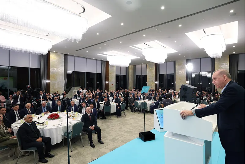 "Çalışkan, vizyon sahibi siz iş insanlarımıza her alanda öncülük ederek sizlerin yolunu açtık, engelleri ortadan kaldırdık, sizlere destek olduk. Sizler de önünüze çıkan fırsatları en iyi şekilde değerlendirerek Türk ekonomisine kan verdiniz, can verdiniz. Ağızlarını her açtıklarında 'yandık bittik' diyerek millete karamsarlık zerk eden felaket tellallarına değil, bu ülkeye inandınız, bu devlete güvendiniz. Aramızdaki işte bu dayanışma sayesinde Türkiye'ye nice başarıları birlikte yaşattık. Mesela, 36 milyar dolardan aldığımız ihracatı 270 milyar dolar sınırına sizlerle birlikte getirdik. Mesela, yıllık 13,2 milyon turist ağırlayan ülkemizi sadece 2025'in ilk altı ayında 26 milyon 390 bin ziyaretçi ağırlayan ülke olarak dünyada dördüncü sıraya sizlerle beraber yükselttik. Savunma sanayinde yüzde 80 olan dış bağımlılığımızı tersine çevirdik. Kendi gemi filomuzu kurarak, yeraltı kaynaklarımızı keşfe başladık. İnsansız hava araçlarında dünyada ilk üç ülkeden biri olduk. Benzer oranları diğer pek çok alanda görmek mümkündür. Bunun bozulmasına fırsat vermeyeceğiz. Bir olacağız, birlikte olacağız, hep beraber inşallah Türkiye olacağız."
