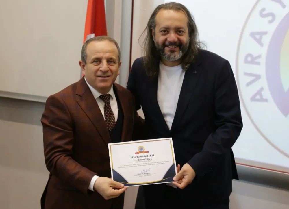 Programın sonunda Avrasya Üniversitesi Rektörü Prof. Dr. Mahir Kadakal, söyleşiye katkılarından dolayı konuşmacılara teşekkür belgesi takdim etti.