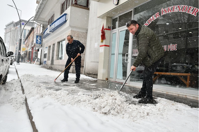 Belediye ekipleri kar temizleme çalışması yaparken, karayolları ekipleri de şehirlerarası yollarda trafiğin aksamaması için karla mücadeleye devam ediyor.