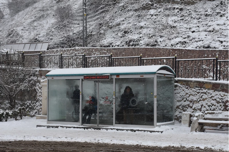 Gümüşhane'de etkisini gösteren kar yağışının ardından cadde ve sokaklar beyaza büründü.