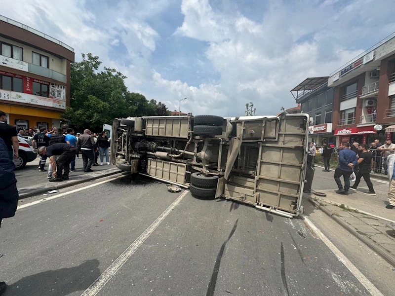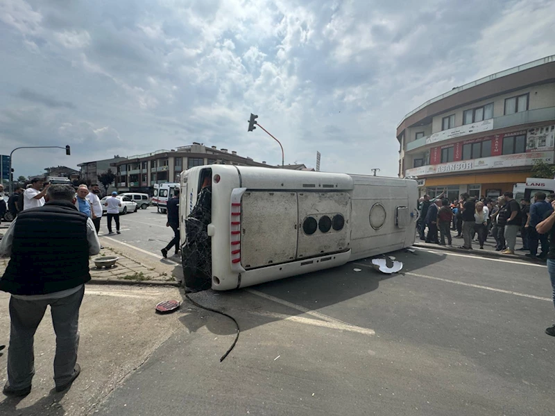 Çarpışmanın etkisiyle midibüs kontrolden çıkarak yola devrildi.