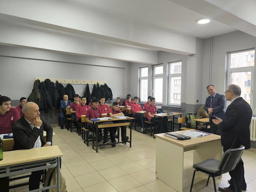 Akçaabat İlçe Milli Eğitim Müdürü Mehmet Usta, emekliye ayrılan Akçaabat Anadolu İmam Hatip Lisesi öğretmenleri Ali Özkurt ve Mustafa Yetim’i son derslerinde ziyaret ederek yanlarında oldu.