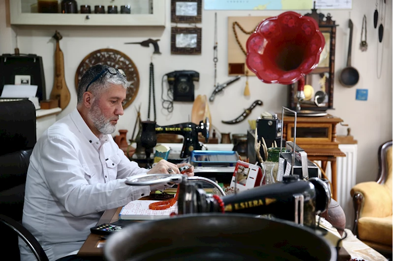 GİRESUN (AA) - GÜLTEKİN YETGİN - Giresun'da tespih ustası Mehmet Arslan, antika tutkusuyla topladığı eski eşyaları atölyesinde sergileyerek müşterilerine nostalji yaşatıyor.