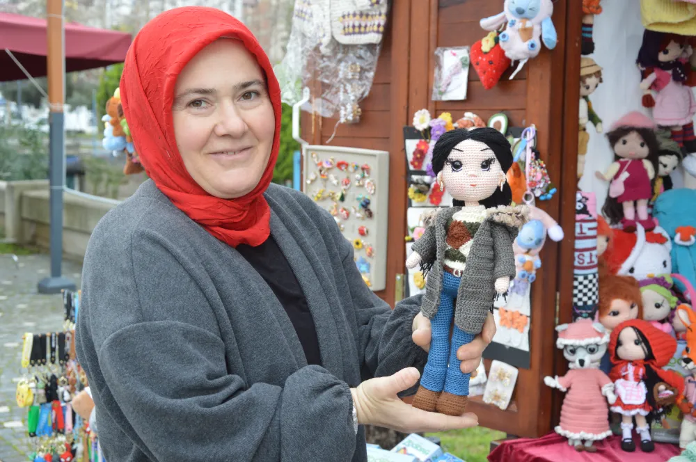 Sahilde bulunan yöresel ürün satış yerlerindeki büfesinde kendi ürünlerini sergileyen Kandaz, özenle hazırladığı Esme bebeğin yapım sürecini anlattı. Amigurumiye duyduğu merakın zamanla bir tutkuya dönüştüğünü ifade eden Kandaz, “Amigurumi hem trend hem de farklı bir alan. Zoru seviyoruz. Ablam Canan İnal bu işin tasarım kısmında bana büyük destek veriyor. Onun tasarımlarının test örgüsünü yapıyorum. Bu sayede ortaya her zaman daha farklı ve güzel ürünler çıkıyor” dedi.