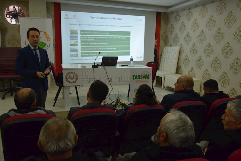 İlçe Tarım ve Orman Müdürlüğü ile TARSİM Giresun Bölge Müdürlüğü işbirliğinde Müftülük toplantı salonunda organize edilen toplantıda TARSİM'in işleyişi ve bu yılki uygulamalar çiftçilere aktarıldı.