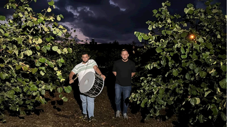 DÜZCE (AA) - ÖMER ÜRER/ALİ KUŞ - Düzce'nin Akçakoca ilçesinde, fındıklarını yabani hayvanlardan korumak isteyen köylüler, hasat sezonu yaklaştığında imece usulüyle davul nöbeti tutma geleneğini sürdürüyor.