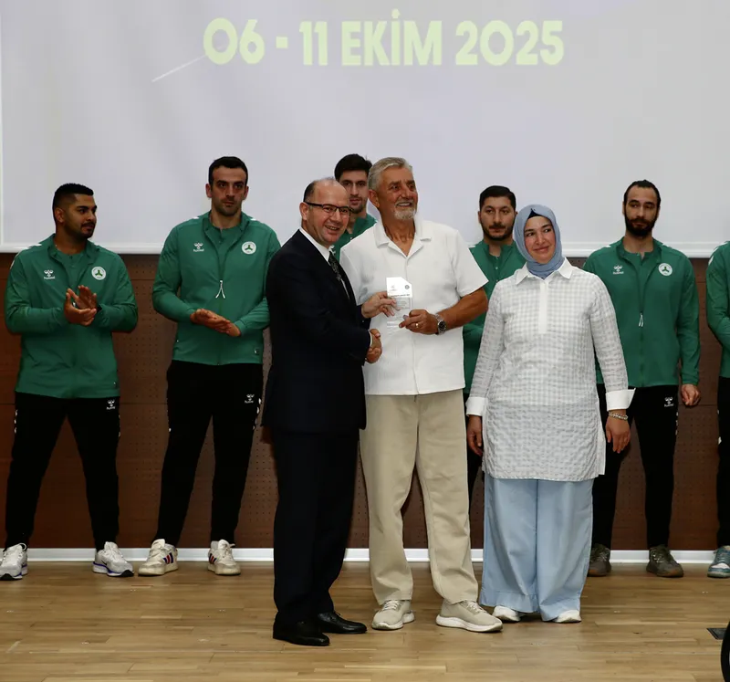 Amerikan Basketbol Ligi'nde (NBA) forma giyen milli oyuncu Alperen Şengün'ün babası Kemal ve annesi Ayşe Şengün'e plaket takdim edilen törende, başarı gösteren spor kulüpleri, sporcular, antrenörler ve okullara ödül verildi.
