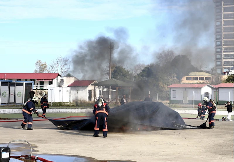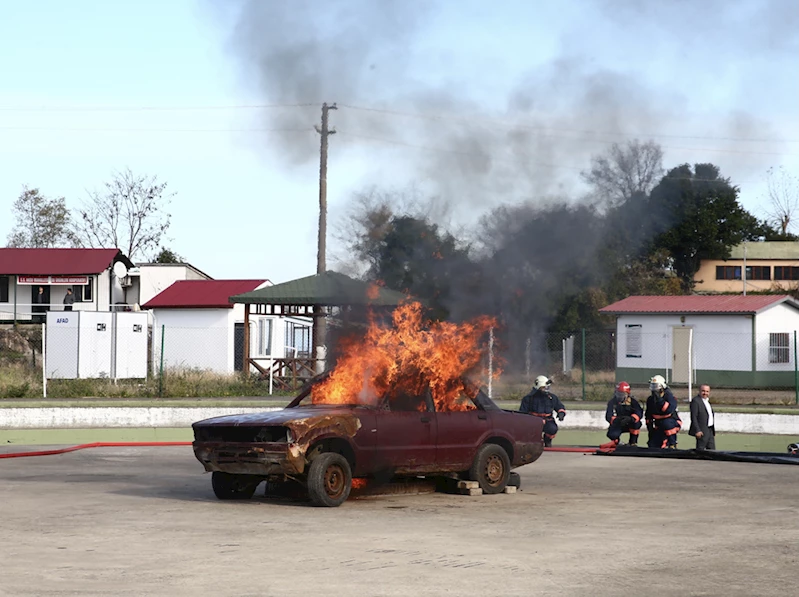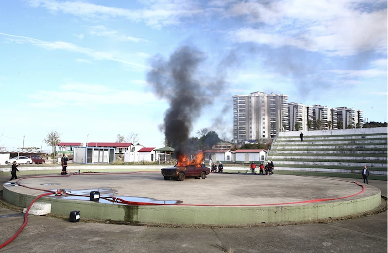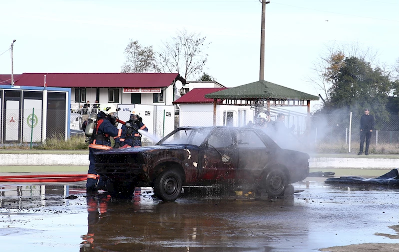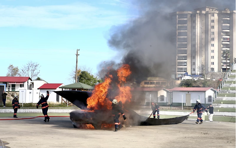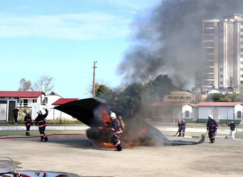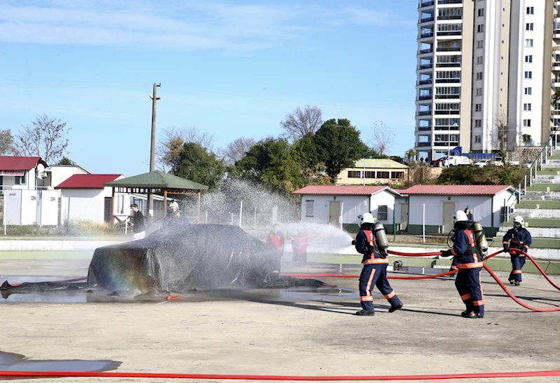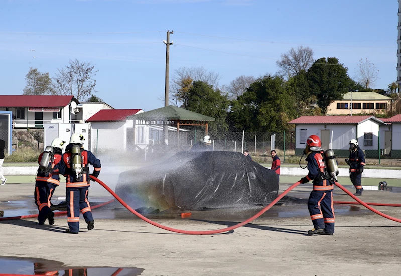 GİRESUN (AA) - Giresun'da elektrikli araç yangınına battaniye yöntemiyle müdahale edilen tatbikat gerçekleştirildi.