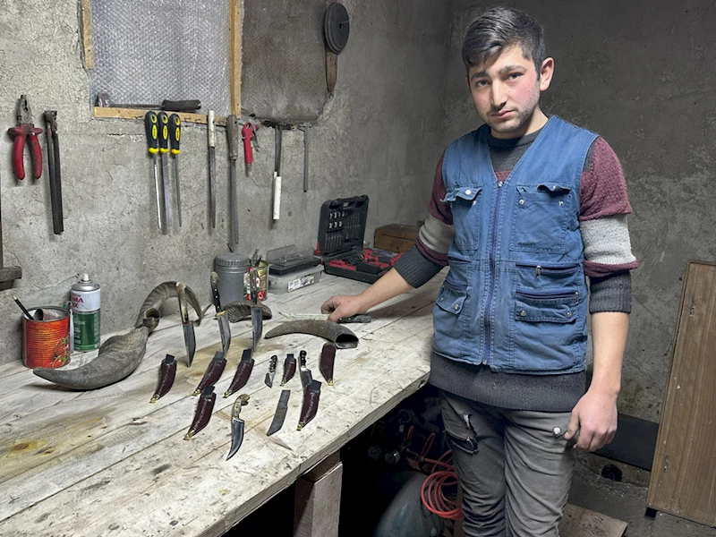 Alucra ilçesinin Karabörk köyünde ailesi ile hayvancılıkla uğraşan 23 yaşındaki Emirhan Karasakal, bir süre önce bıçak yapımına merak saldı.