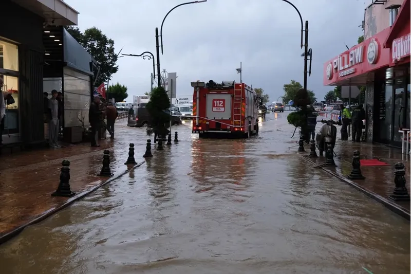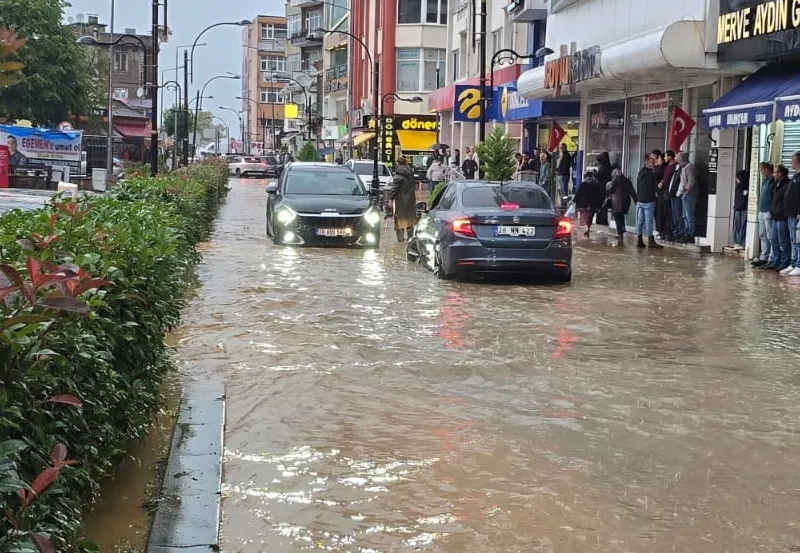 İlçede sağanak nedeniyle cadde ve sokaklarda su birikintileri oluştu, bazı binaların zemin katlarındaki iş yerlerini su bastı.