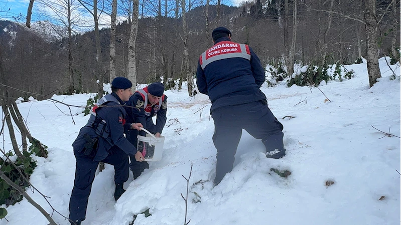 GİRESUN (AA) - Giresun'da, kar yağışının ardından yiyecek bulmakta zorlanan yaban hayvanları için doğaya yem bırakıldı.