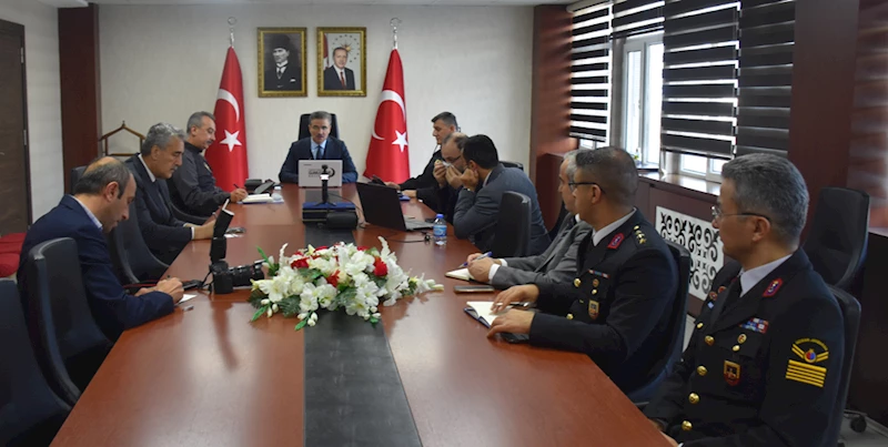 Vali Aydın Baruş başkanlığında Valilik Salonunda düzenlenen toplantıya, İl Jandarma Komutanı Kıdemli Albay Serhat Demiral ve İl Emniyet Müdürü İsmail Karasakal katıldı.