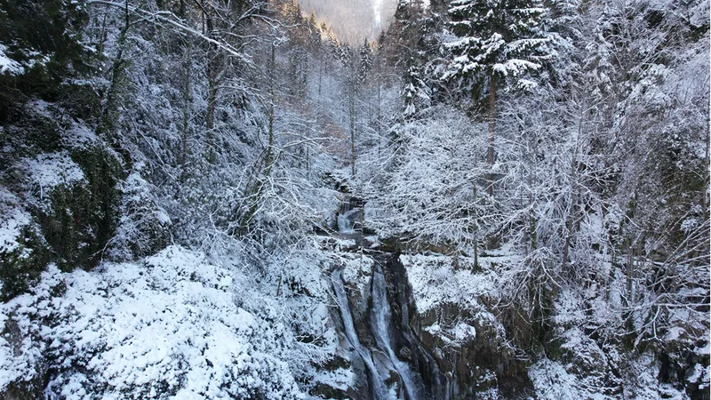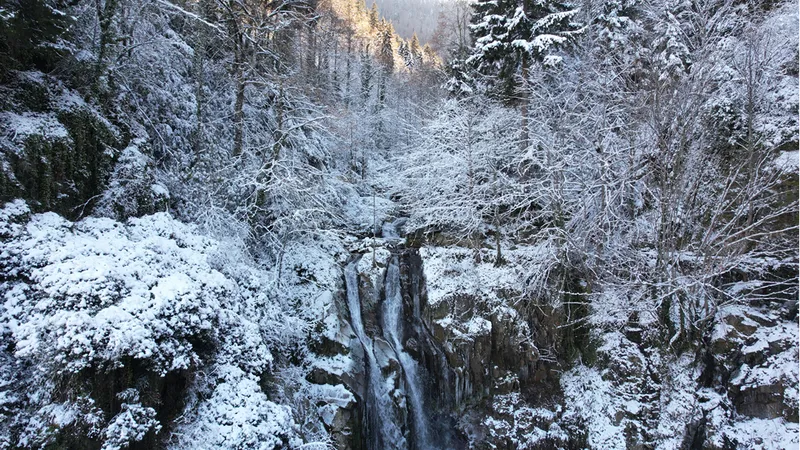 GÜMÜŞHANE (AA) - Gümüşhane'de Örümcek Ormanları'nın içinden doğup 15 metreden dökülen Çağlayandibi Şelalesi, karın ardından beyaz örtüyle kaplandı.