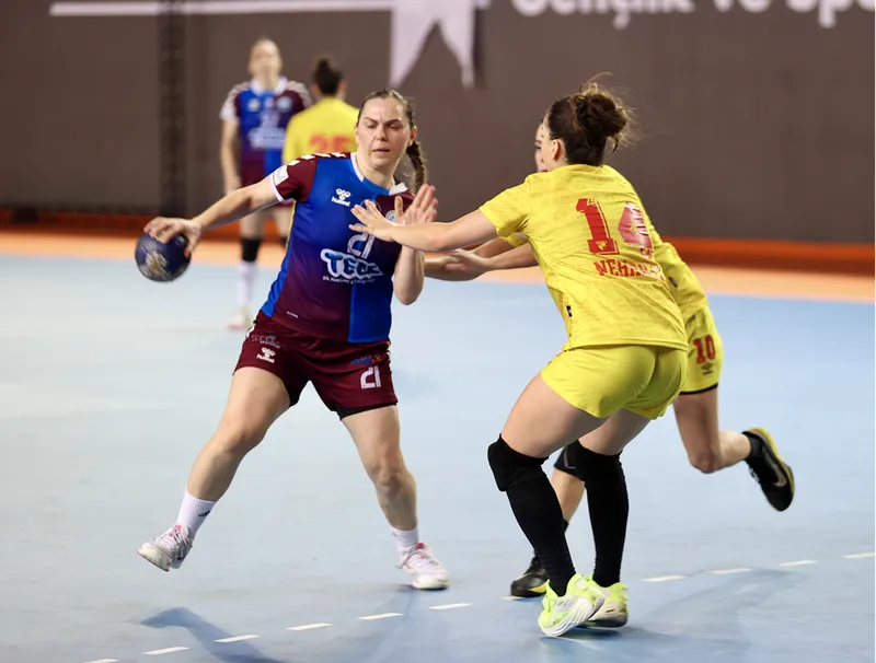 Beşirli Spor Salonu'nda oynanan mücadelenin ilk yarısı, ev sahibi Ortahisar Belediyespor'un 20-14 üstünlüğüyle tamamlandı.