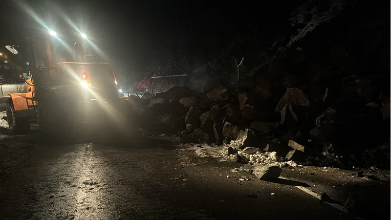 Heyelan nedeniyle kara yolu çift yönlü ulaşıma kapandı. Yaklaşık 1,5 saat ulaşıma kapanan yolda araç kuyruğu oluştu.