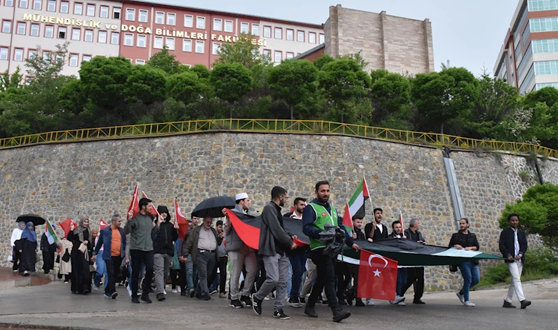 Gümüşhane'de de üniversite öğrencileri İsrail'i protesto etti.