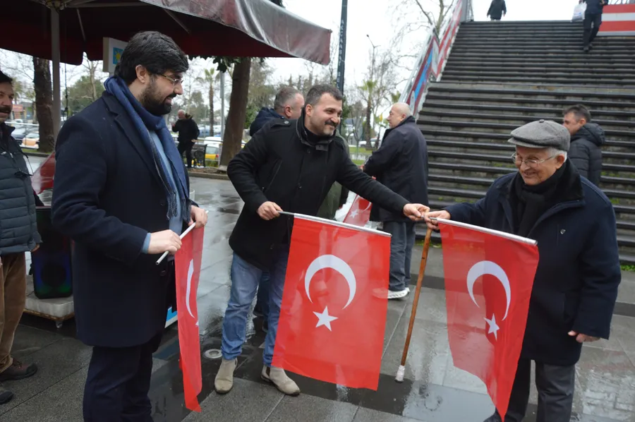 Etkinlikte konuşan İlçe Başkanı Furkan Yetim, “Geçtiğimiz günlerde Mardin Nusaybin’de bayrağımıza karşı yaşanan saldırıyı kınıyoruz. Bu duruma Akçaabat’tan bir ses vermek istedik. Hemşerilerimize Türk bayrağı hediye ederek milli birlik ve beraberliğe olan bağlılığımızı göstermek istedik” dedi.