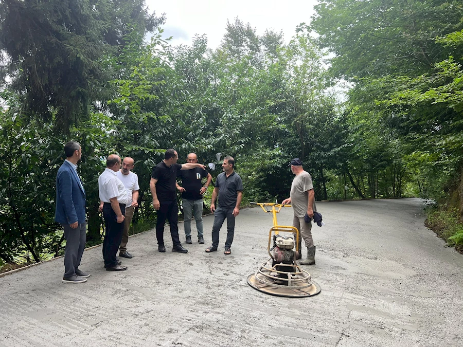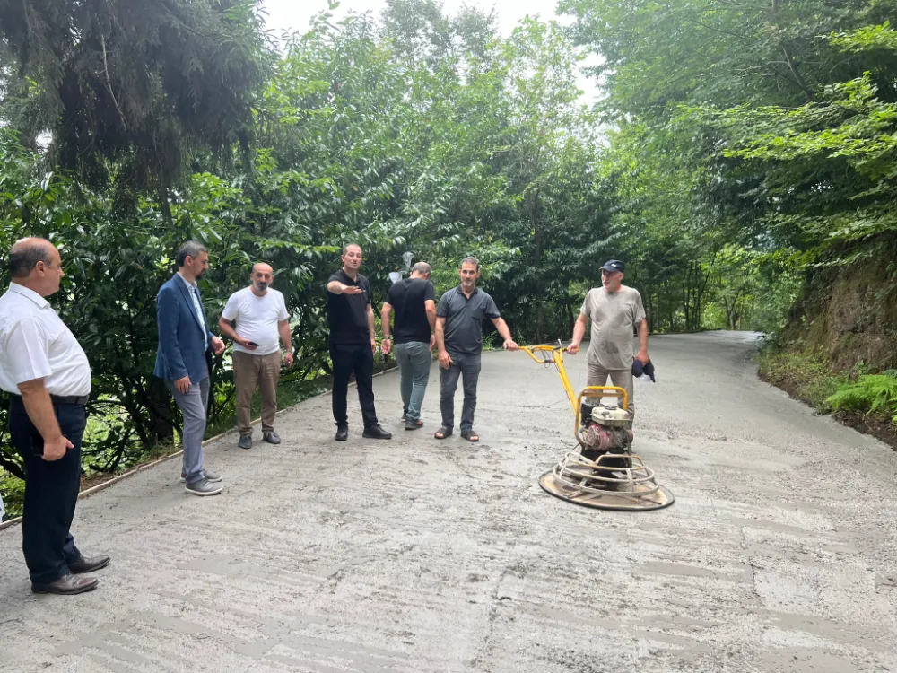 Kemaliye Mahallesi’nde yürütülen beton yol çalışmasını yerinde takip eden Akçaabat Belediye Başkanı Osman Nuri Ekim, çalışma hakkında Fen İşleri Müdürü Mustafa Berber’den de bilgi aldı.